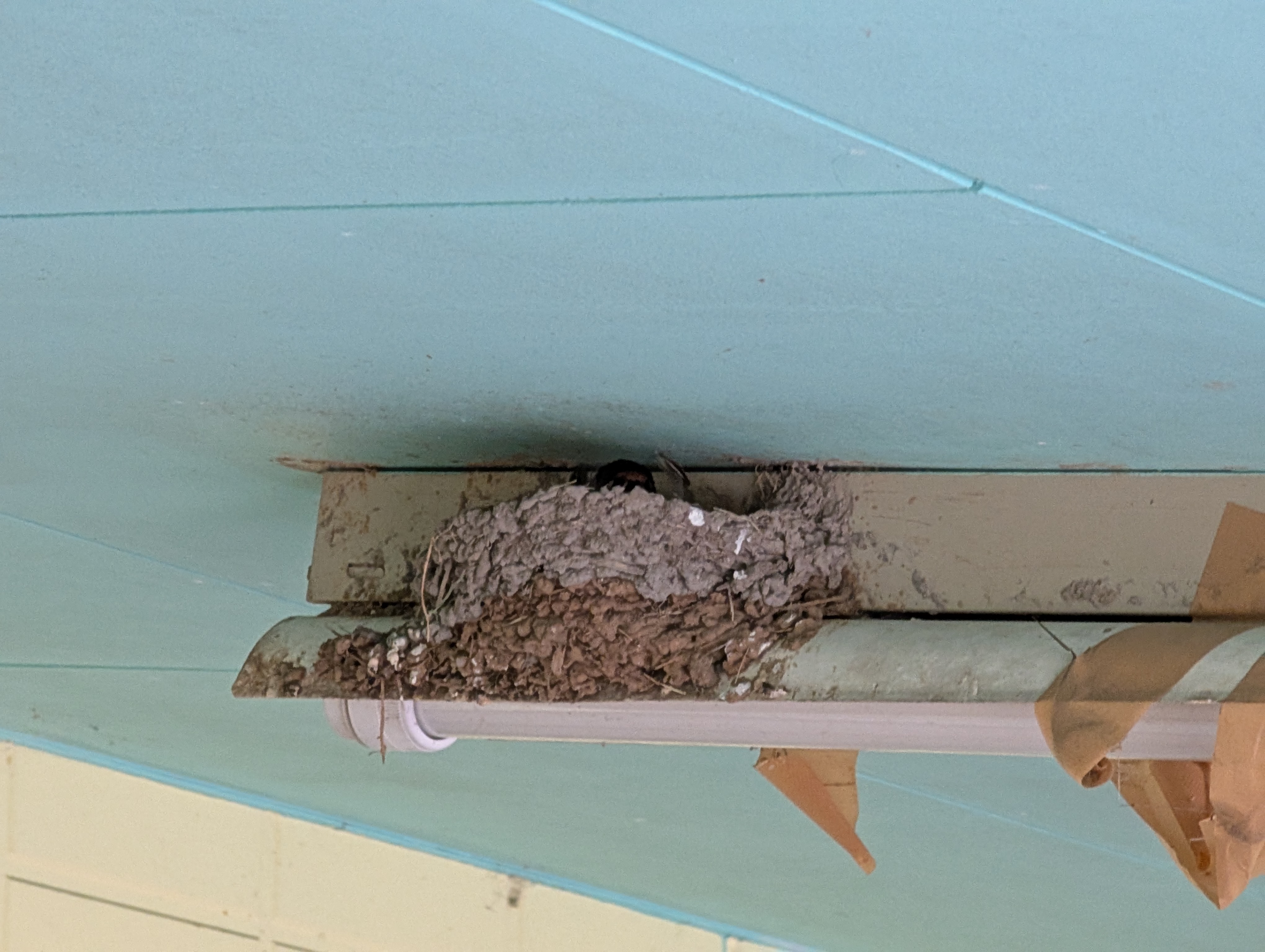 ツバメが卵を温めてるようです