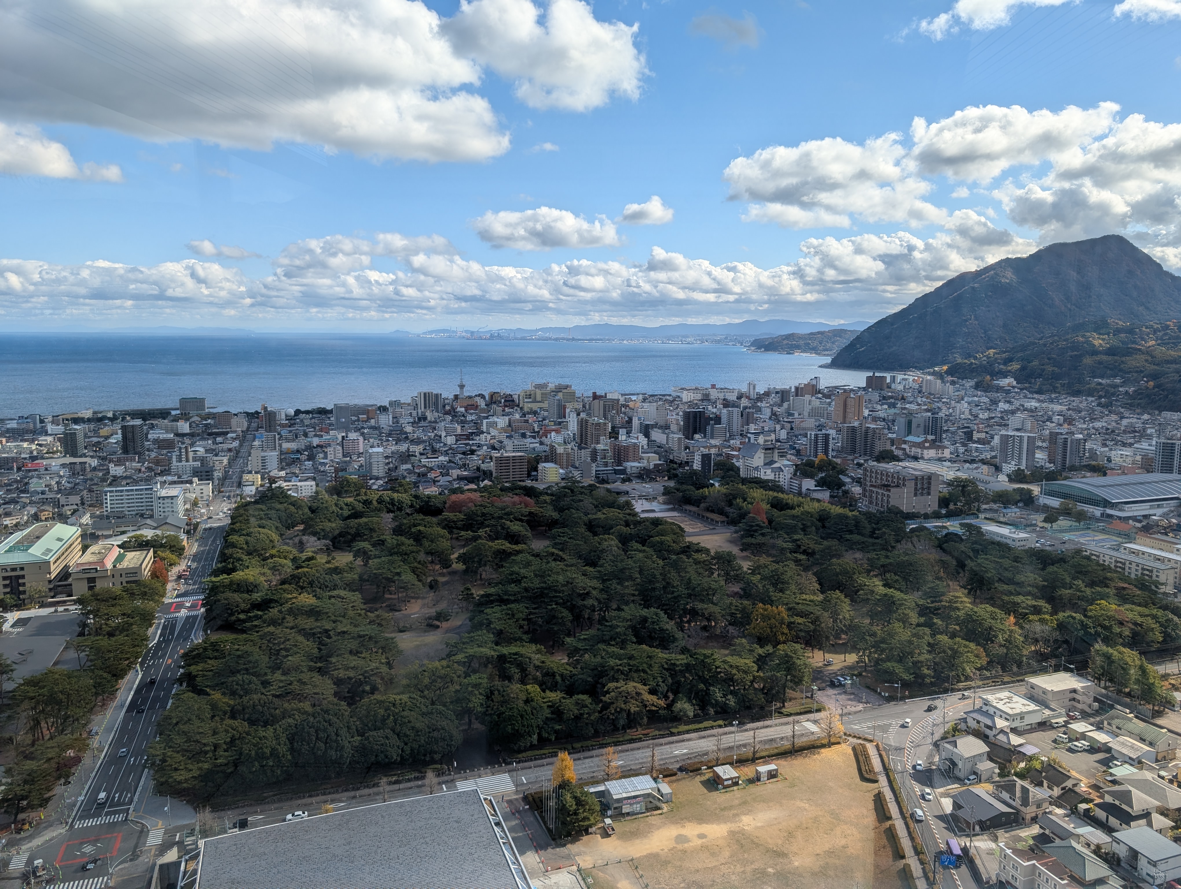 別府ビーコンプラザのグローバルタワーから、別府湾大分方面