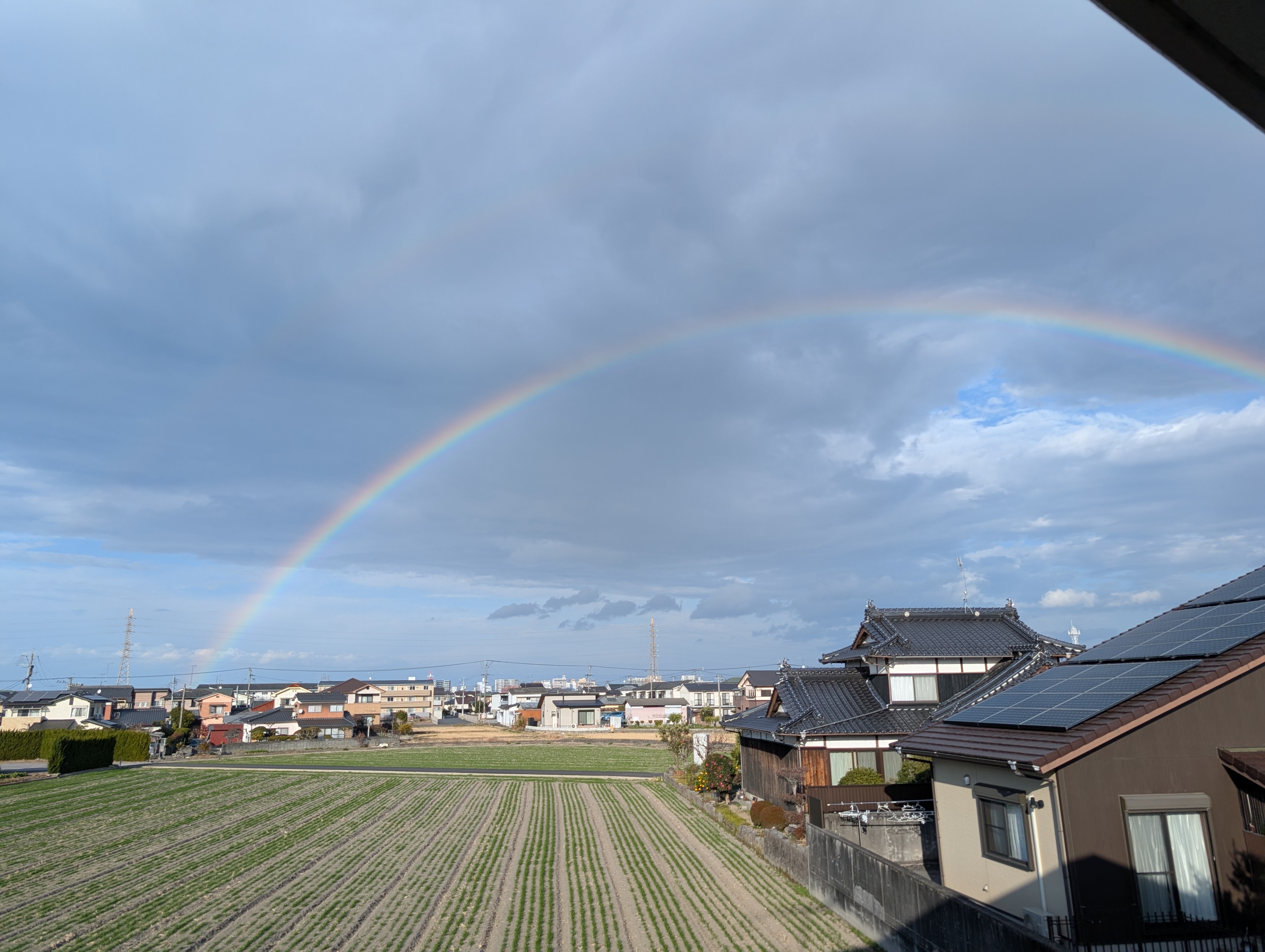 1月15日、仕事帰りに天気雨の中、虹が出てました